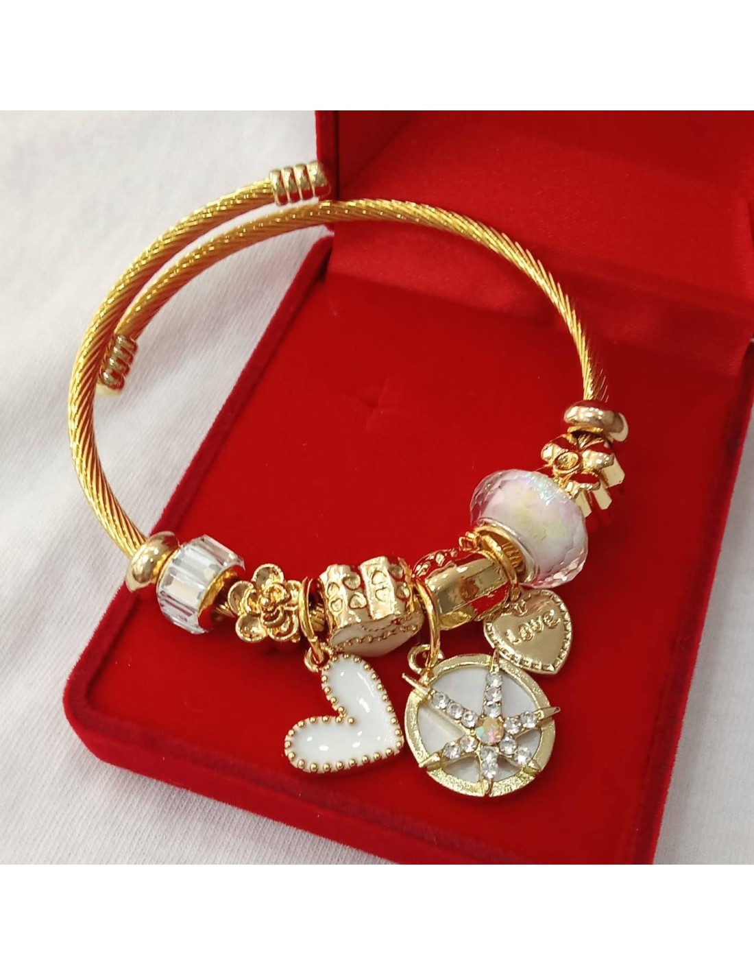 Pulsera rígida de acero inoxidable, en dorado con abalorios surtidos