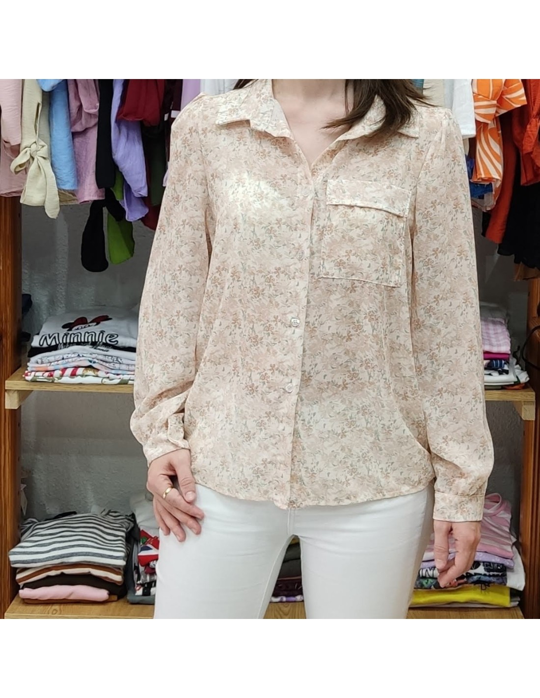 De tejido fino y ligero, cuello italiano, botonadura a lo largo de la prenda, y puños con botón. Detalle de bolsillo en el el pecho, estampado floral.