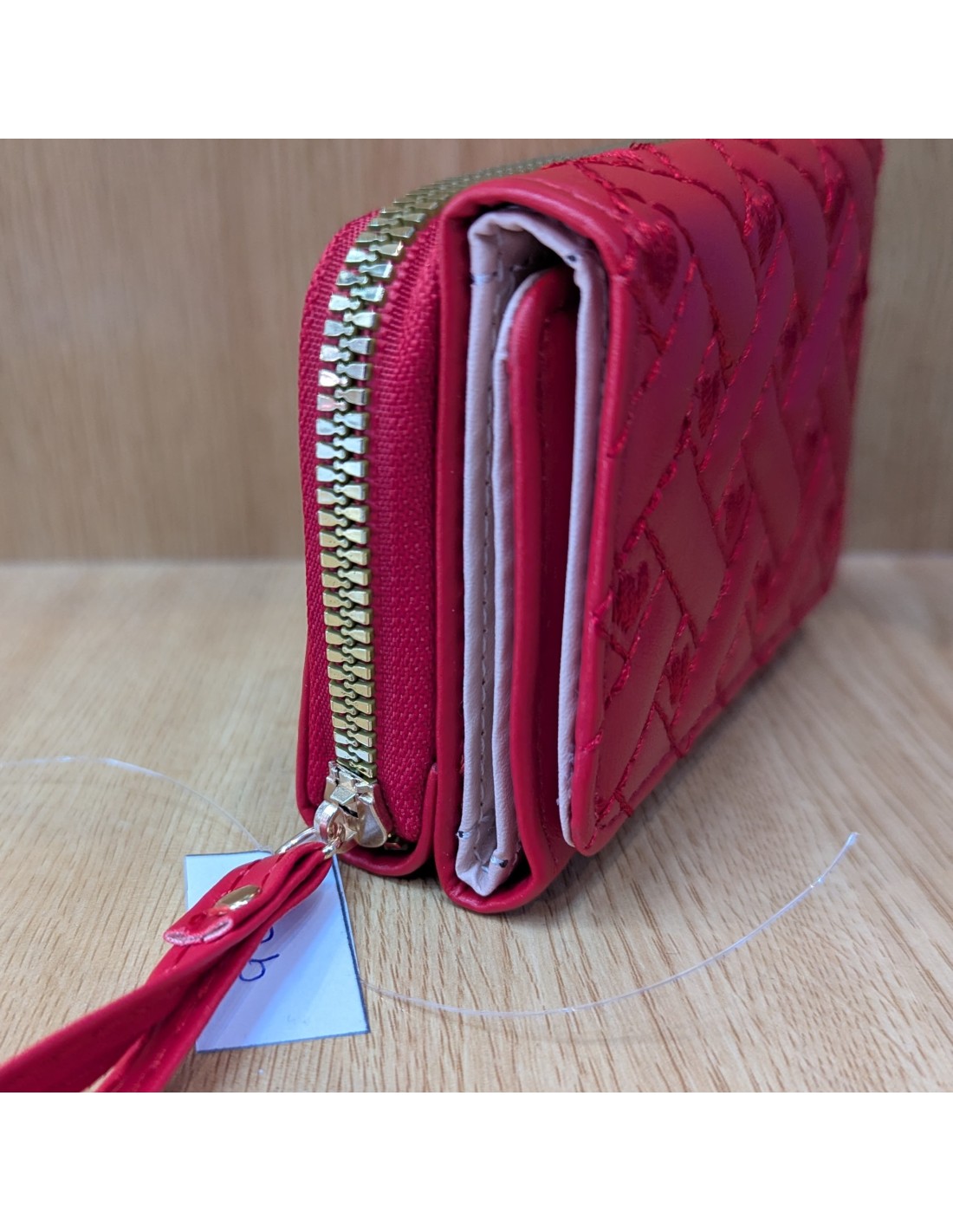 Monedero pequeño, con detalle de bordado de corazones, tiene cierre de cremallera, compartimentos para monedas, billetes y tarjetas.