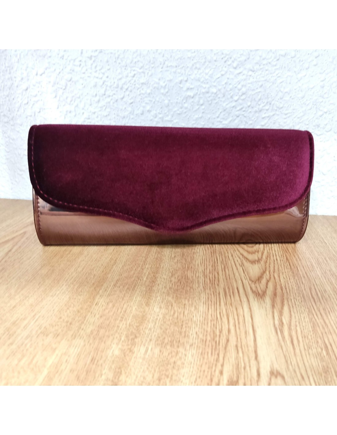 Terciopelo en parte superior de color granate. Cobre metalizado en parte inferior.