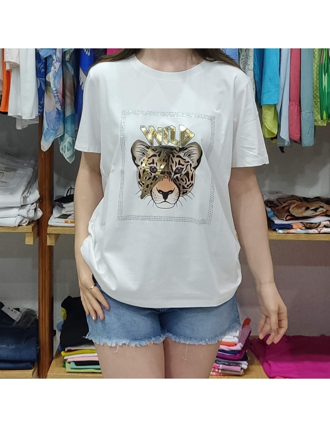 Camiseta de algodón, de corte holgado, manga corta con escote redondo y dobladillo en las mangas, estampado bonito.