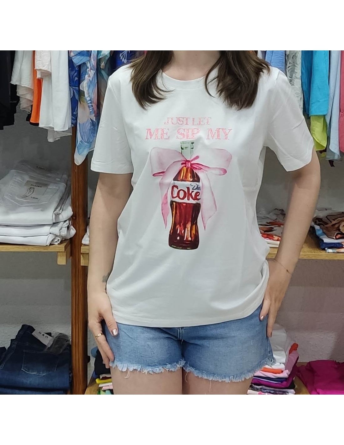 Camiseta de algodón, de corte holgado, manga corta con escote redondo y dobladillo en las mangas, estampado bonito.