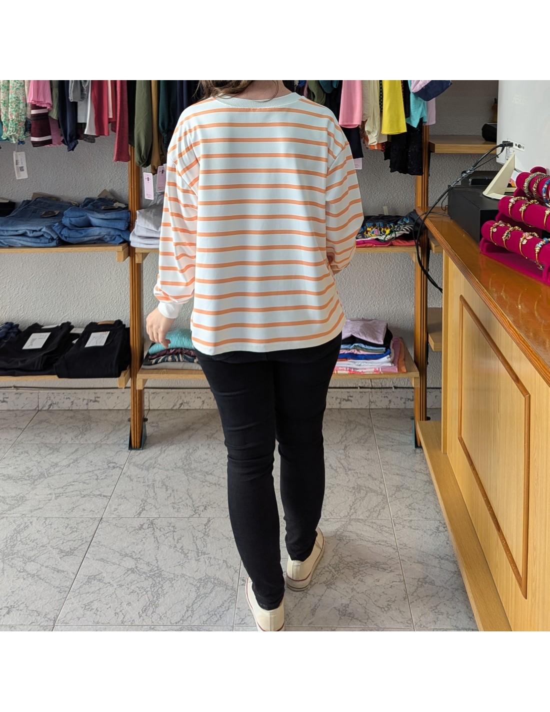 Sudadera de algodón, cuello redondo, puños y cuello elásticos. Estampado combinado con un dibujo  de tigre divertido y original acompañado de rayas. Es una sudadera muy suave y cómoda perfecta para el entretiempo.
