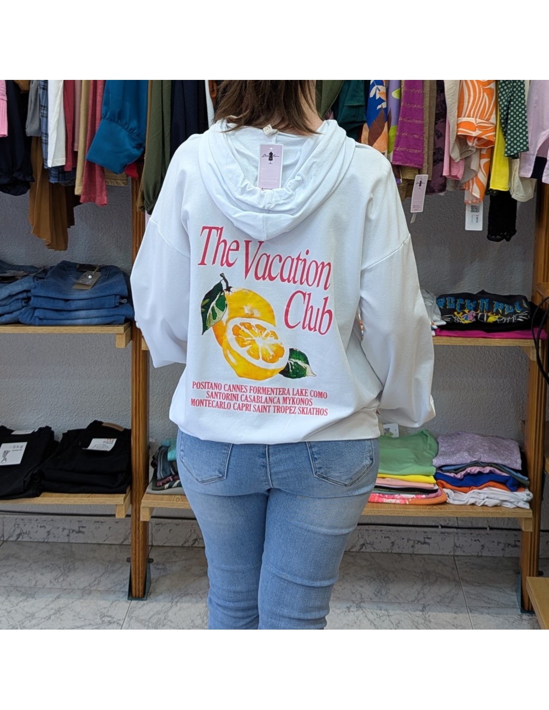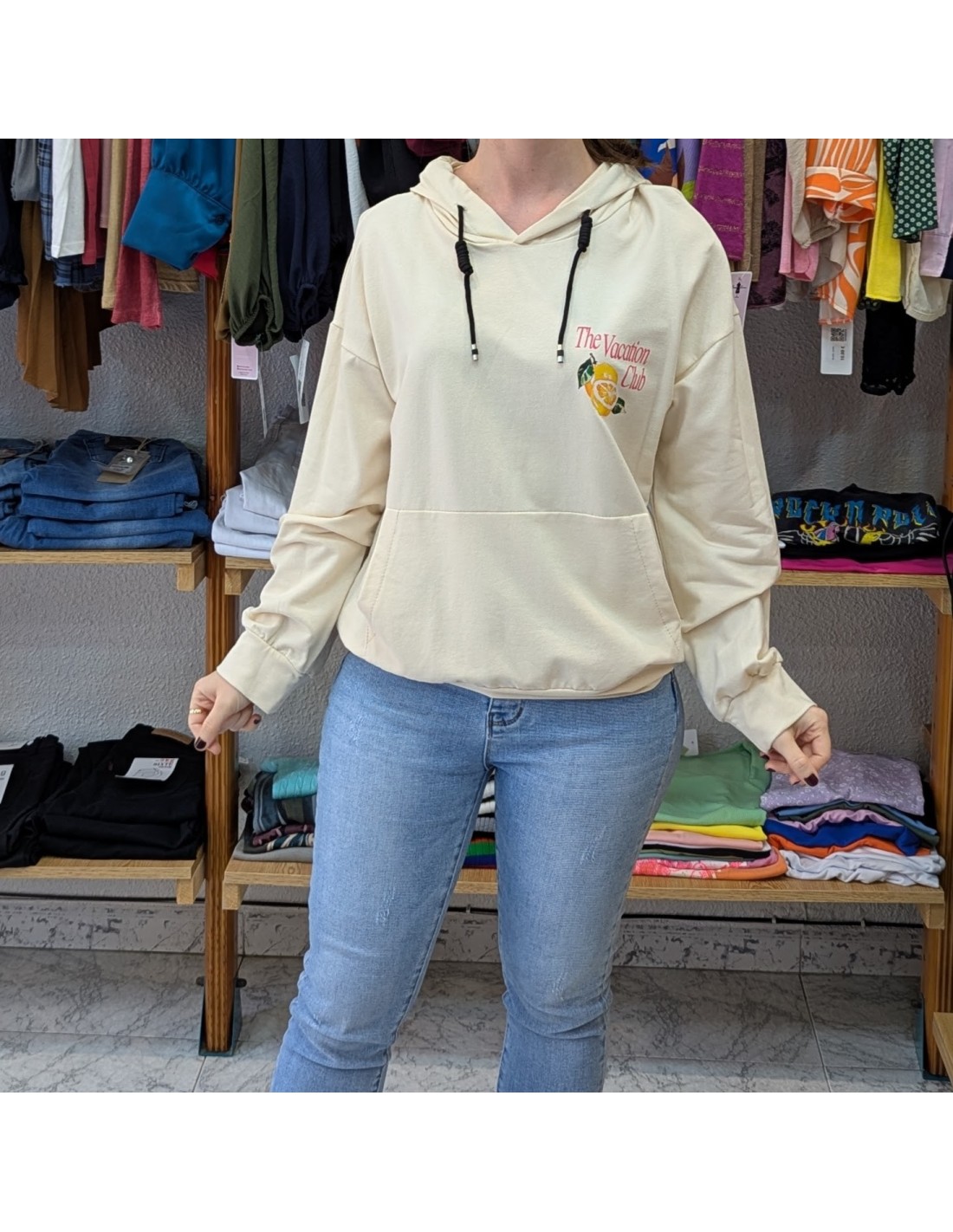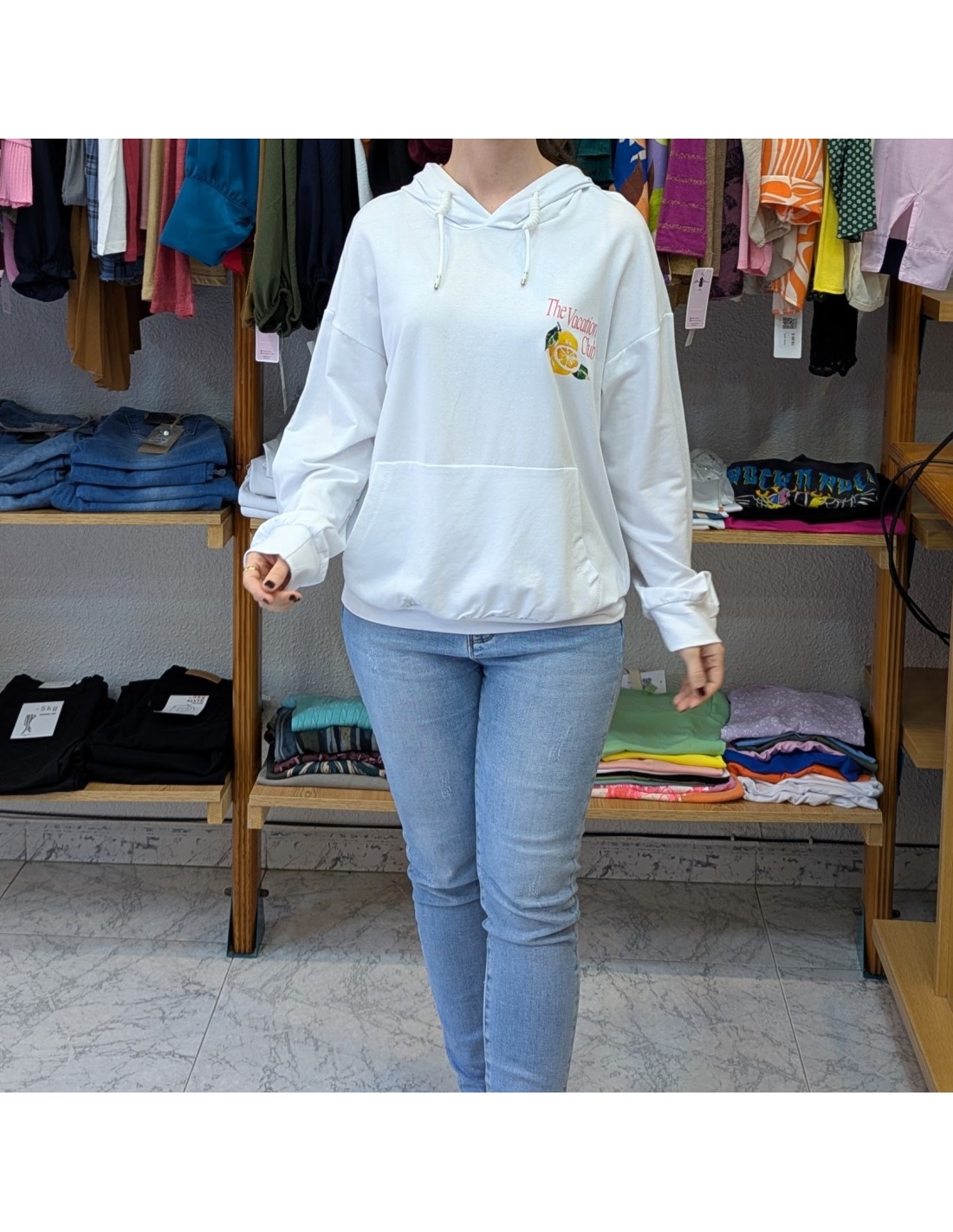 Sudadera de algodón, con capucha ajustable y bolsillo de canguro, detalle de estampado cítrico en la zona del pecho y en la espalda.
