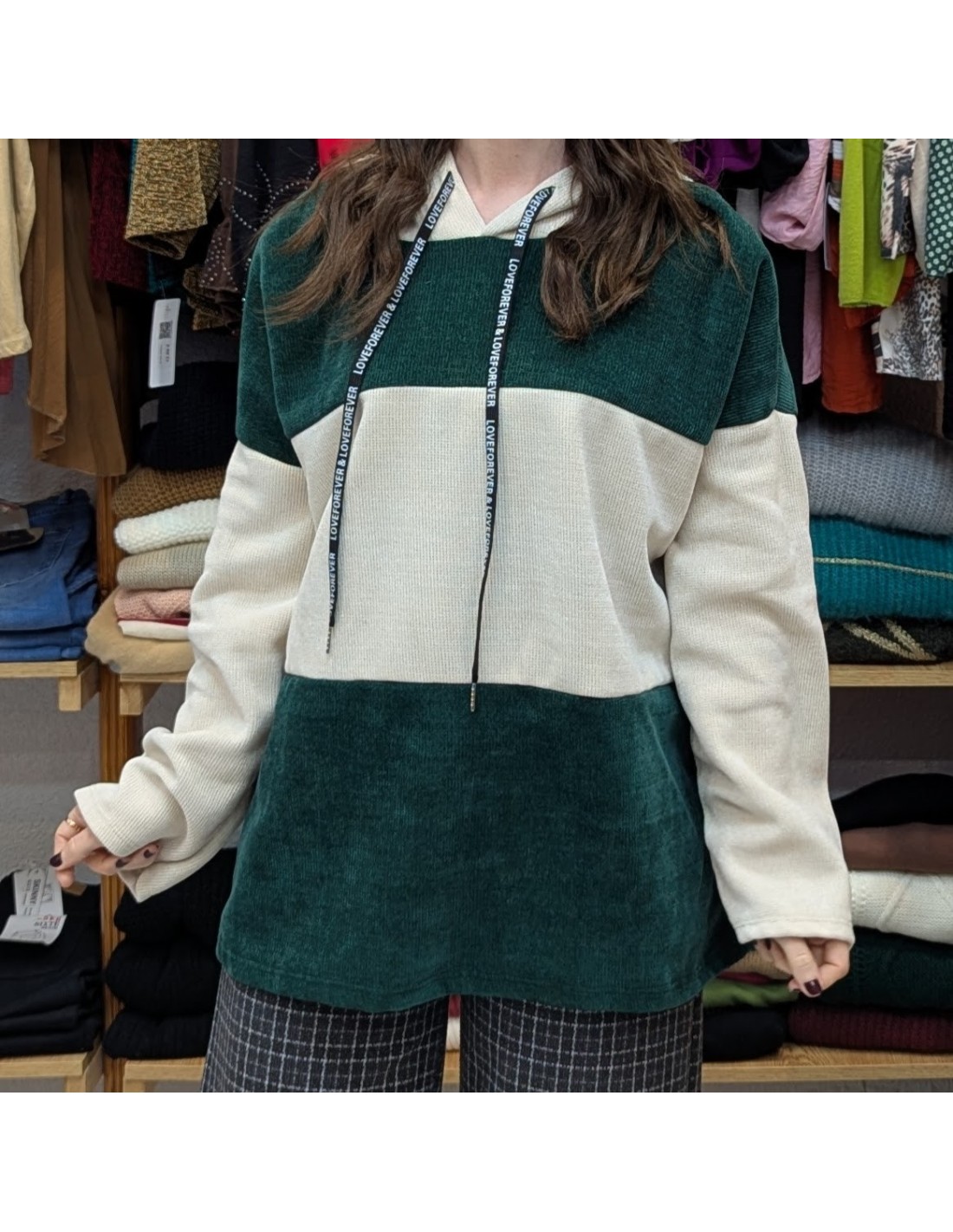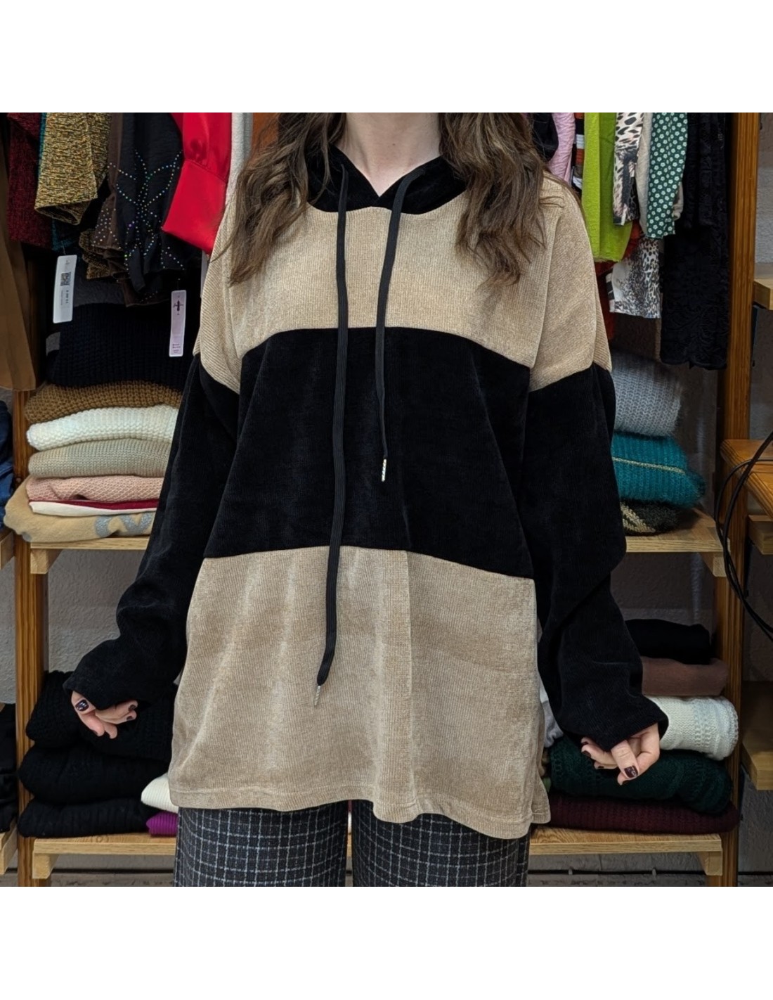 Sudadera de invierno para talla grande, bicolor, cómoda y de diseño moderno y favorecedor, es de micro pana suave y calentita. Tiene un contraste de color bonito y fácil de combinar. Incluye capucha con cordones ajustables. Una sudadera de corte relajado.