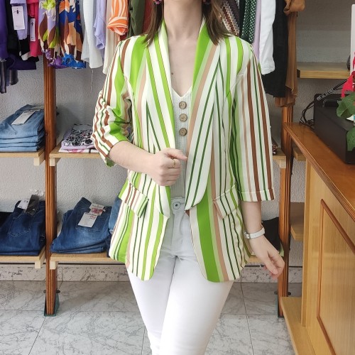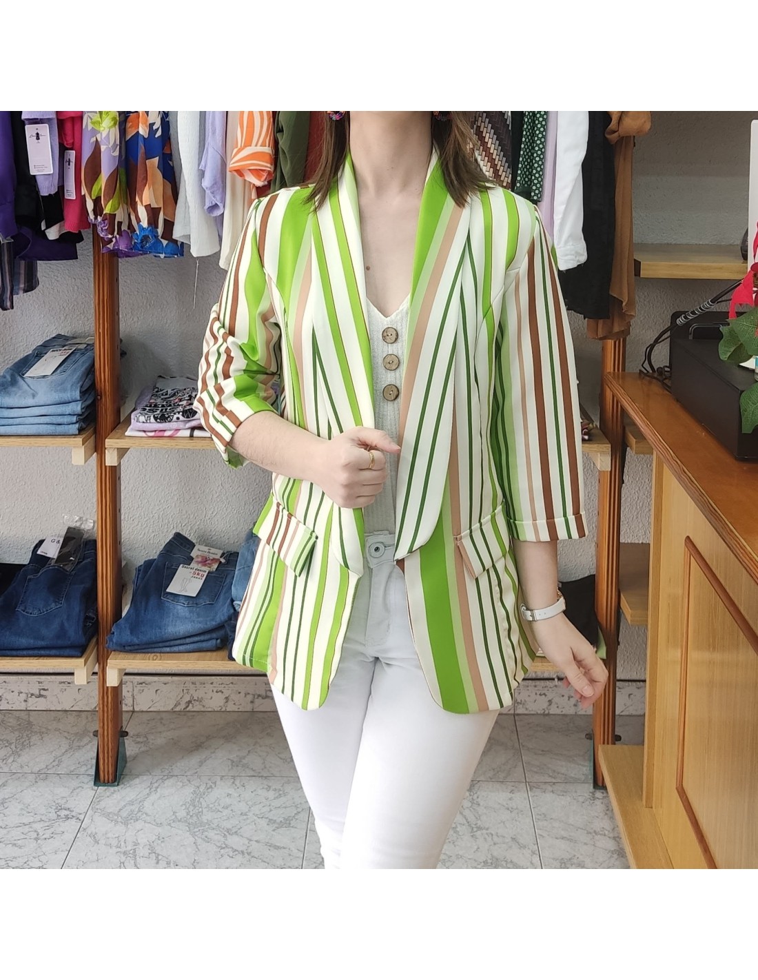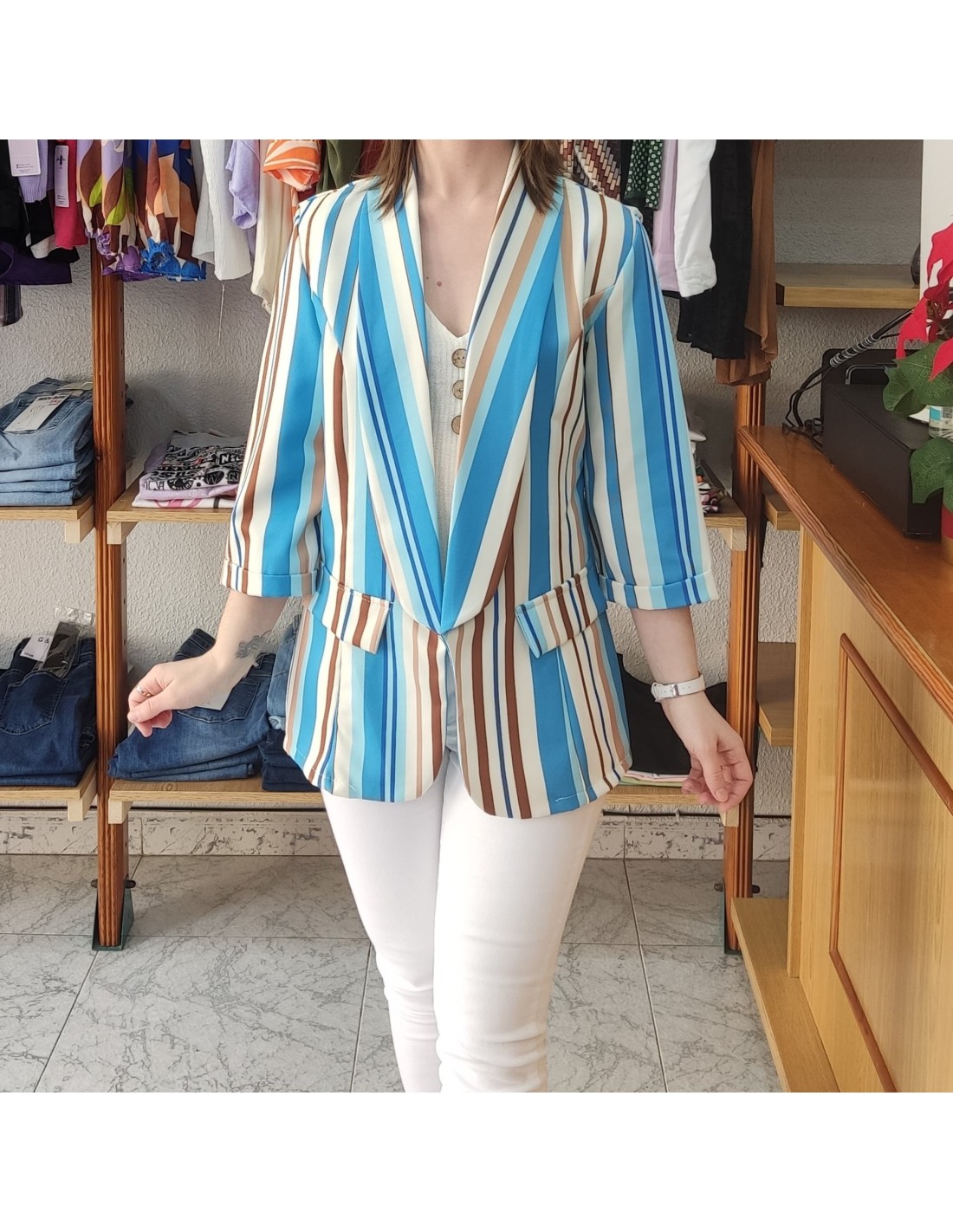 Chaqueta abierta, manga 3/4, largo medio, con estampado de rayas