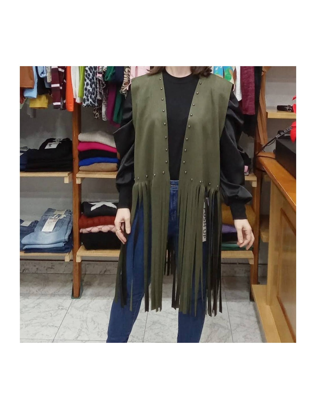 Chaleco de talla amplia, de Antelina con fleco largo y detalle de tachuelas.