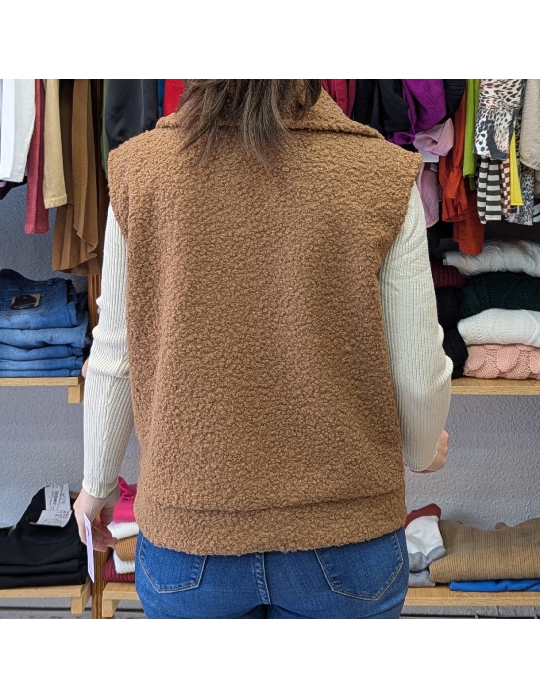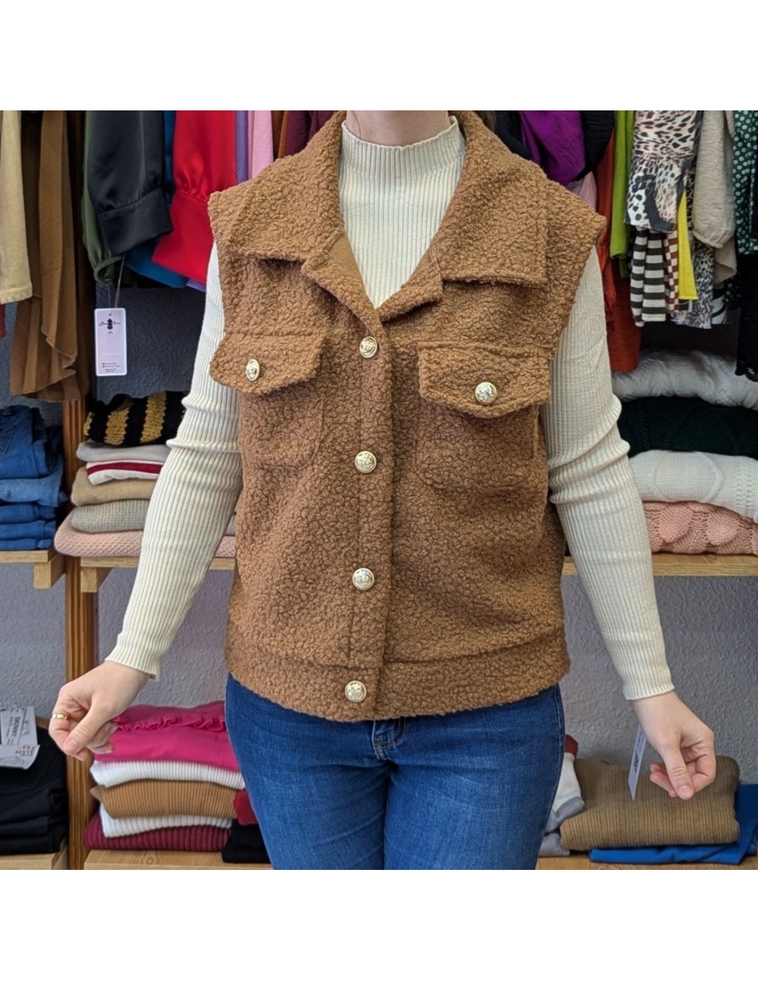Confeccionado en un tejido efecto borreguito muy suave, tiene detalle de botones dorados decorativos.