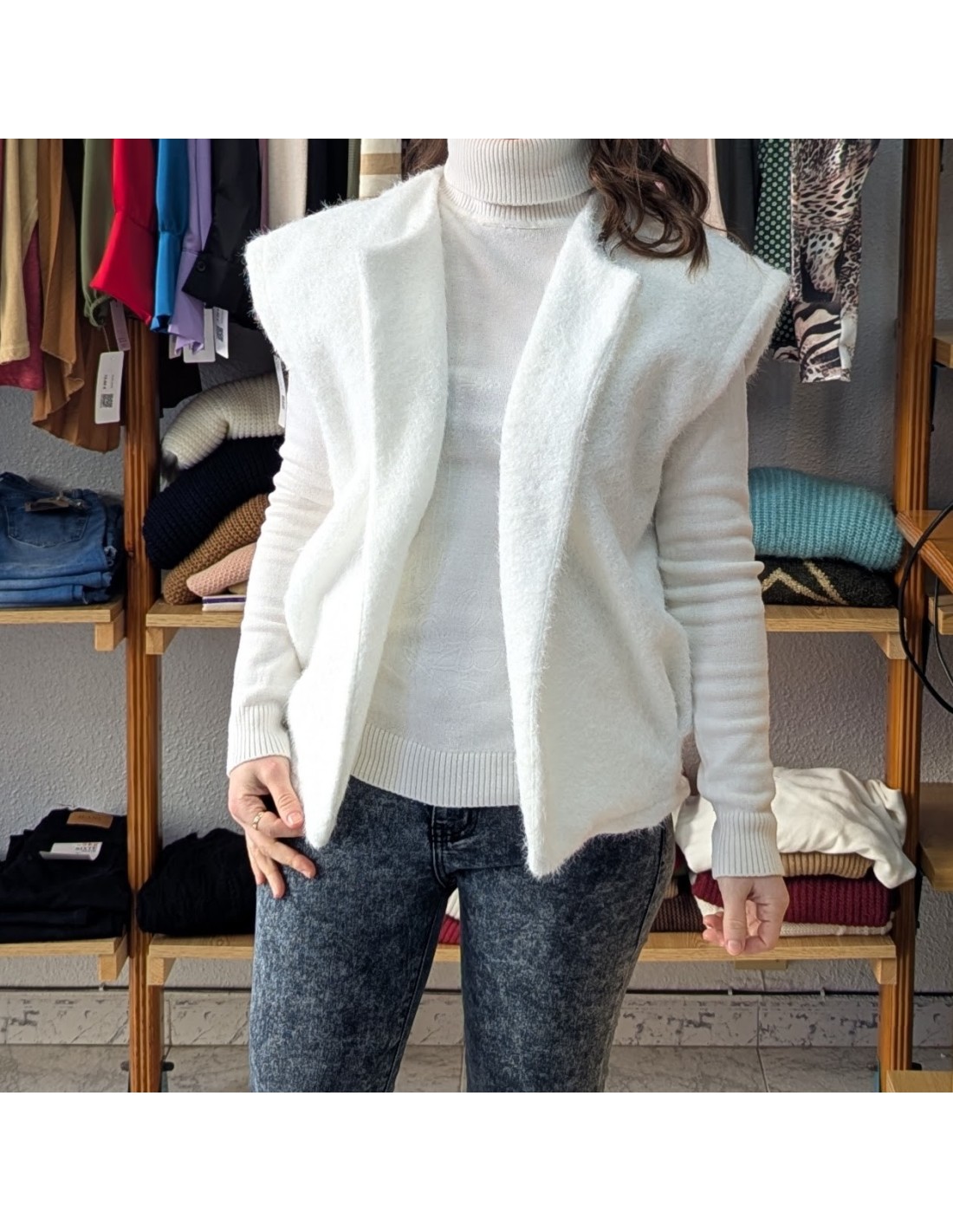Chaleco de efecto lana, de diseño abierto confeccionado en tejido calentito y ligero. Es ideal para superponer y dar estilo a cualquier look.