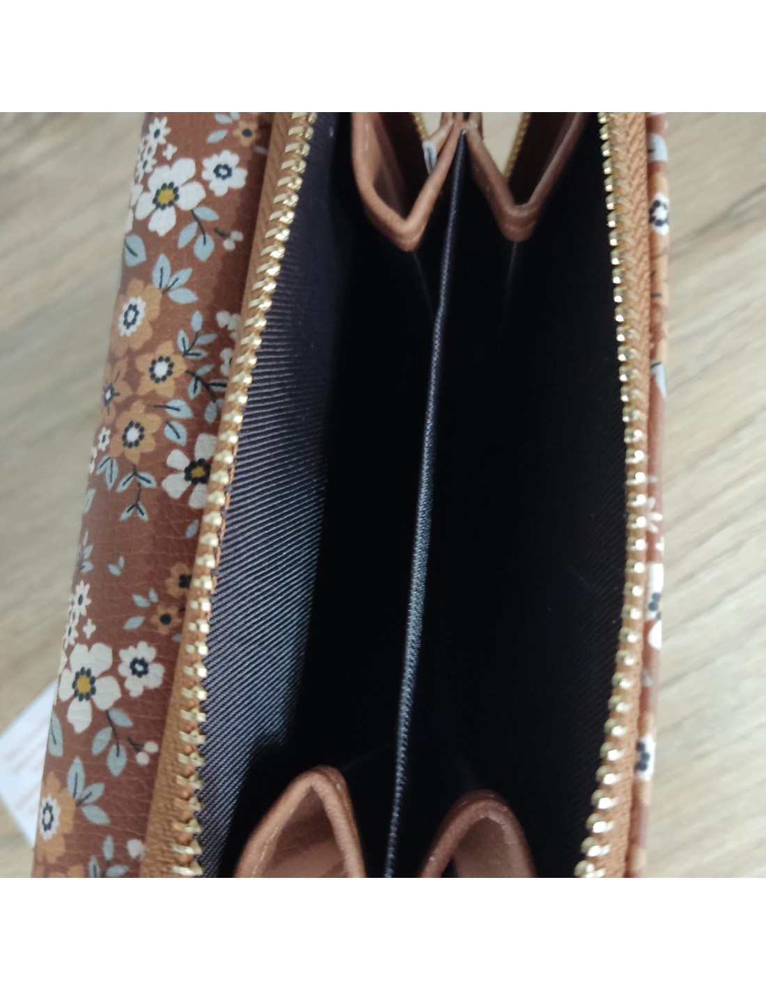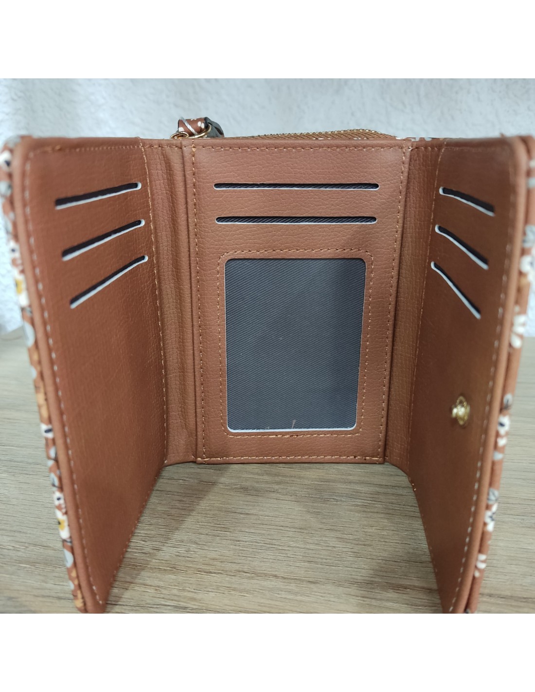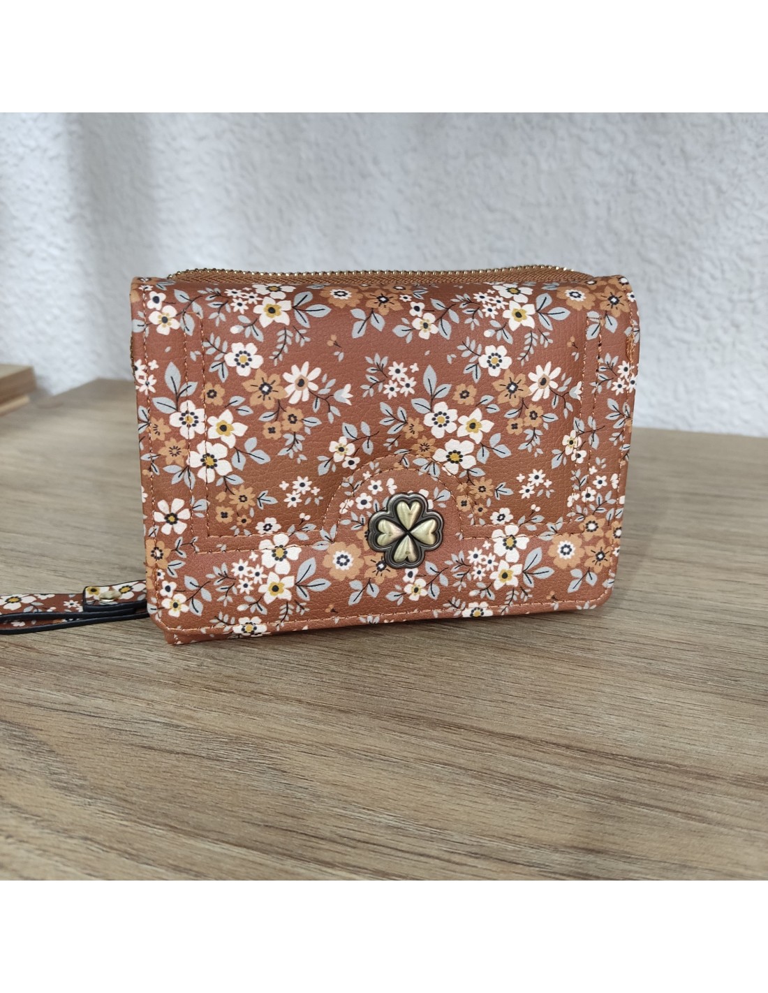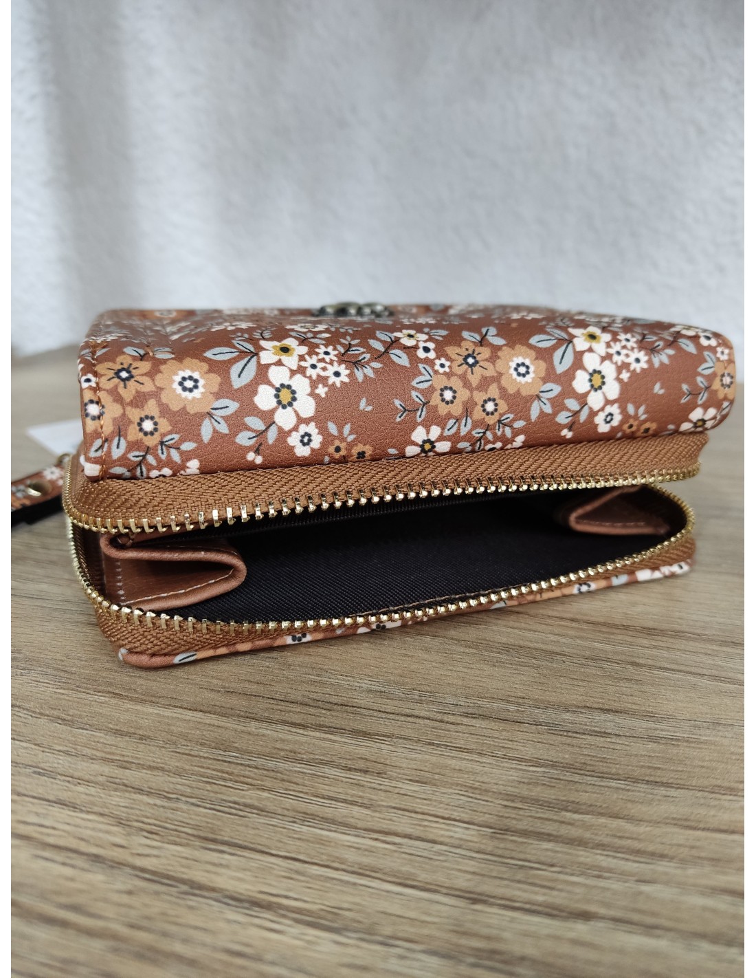 Últimas unidades en stock Complementos Monedero Flores Negro 12062023003 9,00 € Monedero pequeño con estampado floral, cuenta con cierre adornado con una flor, espacio para monedas y compartimento para tarjetas. Añadir al carrito
