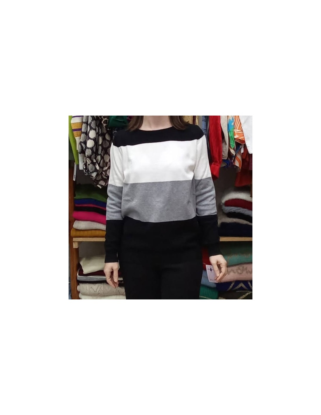Producto disponible con otras opciones Jerséis / Suéteres Jersey Berta 10,00 € Su diseño con cuello semi cisne resalta la elegancia del rostro, mientras que el delicado detalle de ondas en el cuello y en los puños le aporta un toque de estilo único. De lana suave y cálida, nuestro Jersey Berta se adapta a tu figura. Largo hasta la cadera. De canalé fino. Ver producto