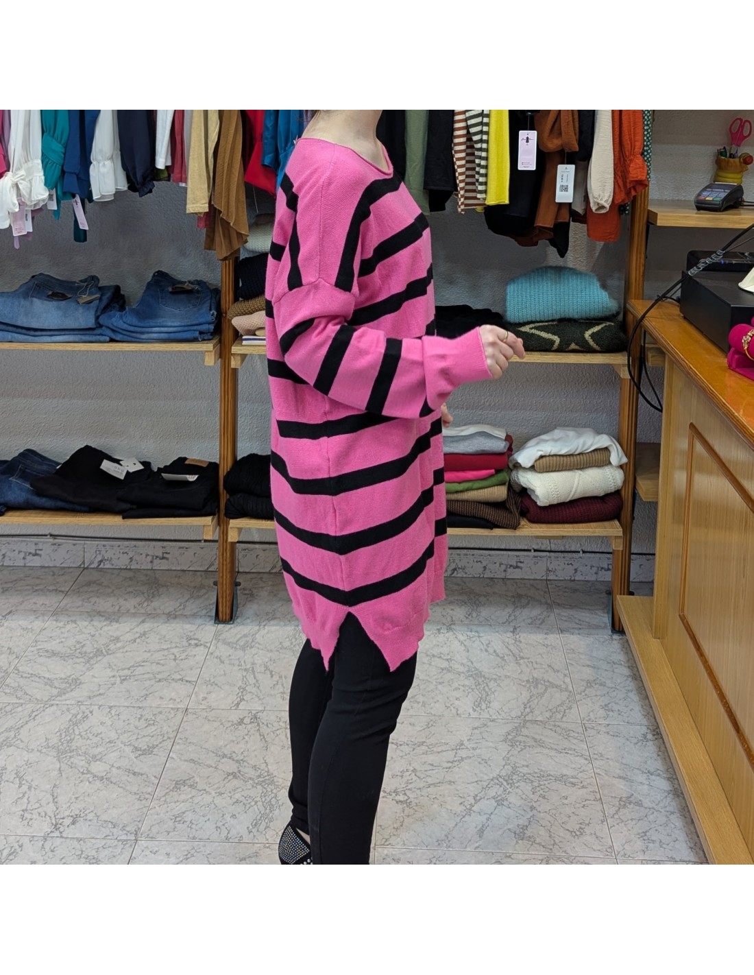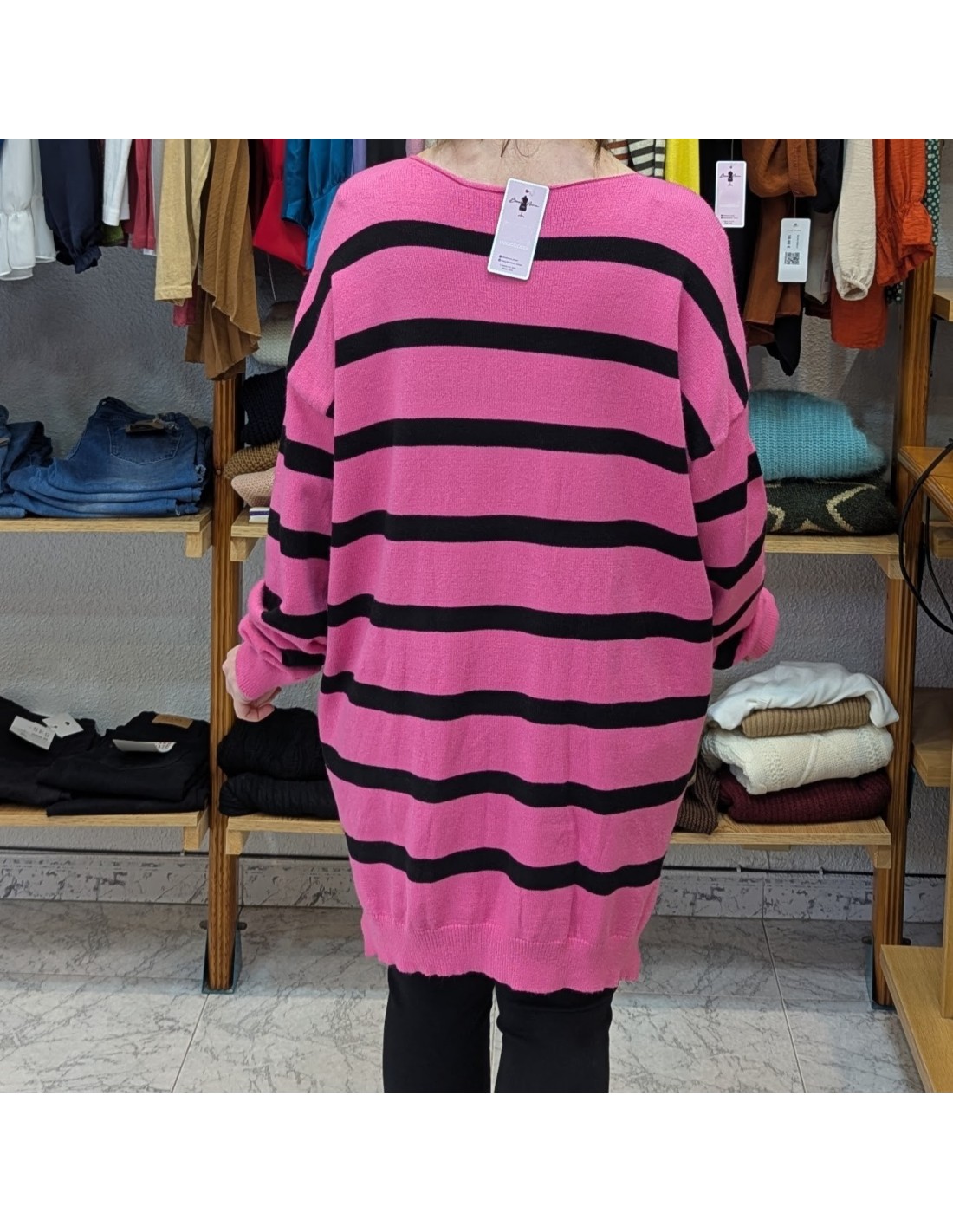 Nuevo Fuera de stock Jerséis / Suéteres Jersey Serena 12,00 € Jersey de punto en color burdeos, de manga larga y escote barco con detalles de ojales metálicos plateados, de textura suave y largo hasta la cintura. Ver producto