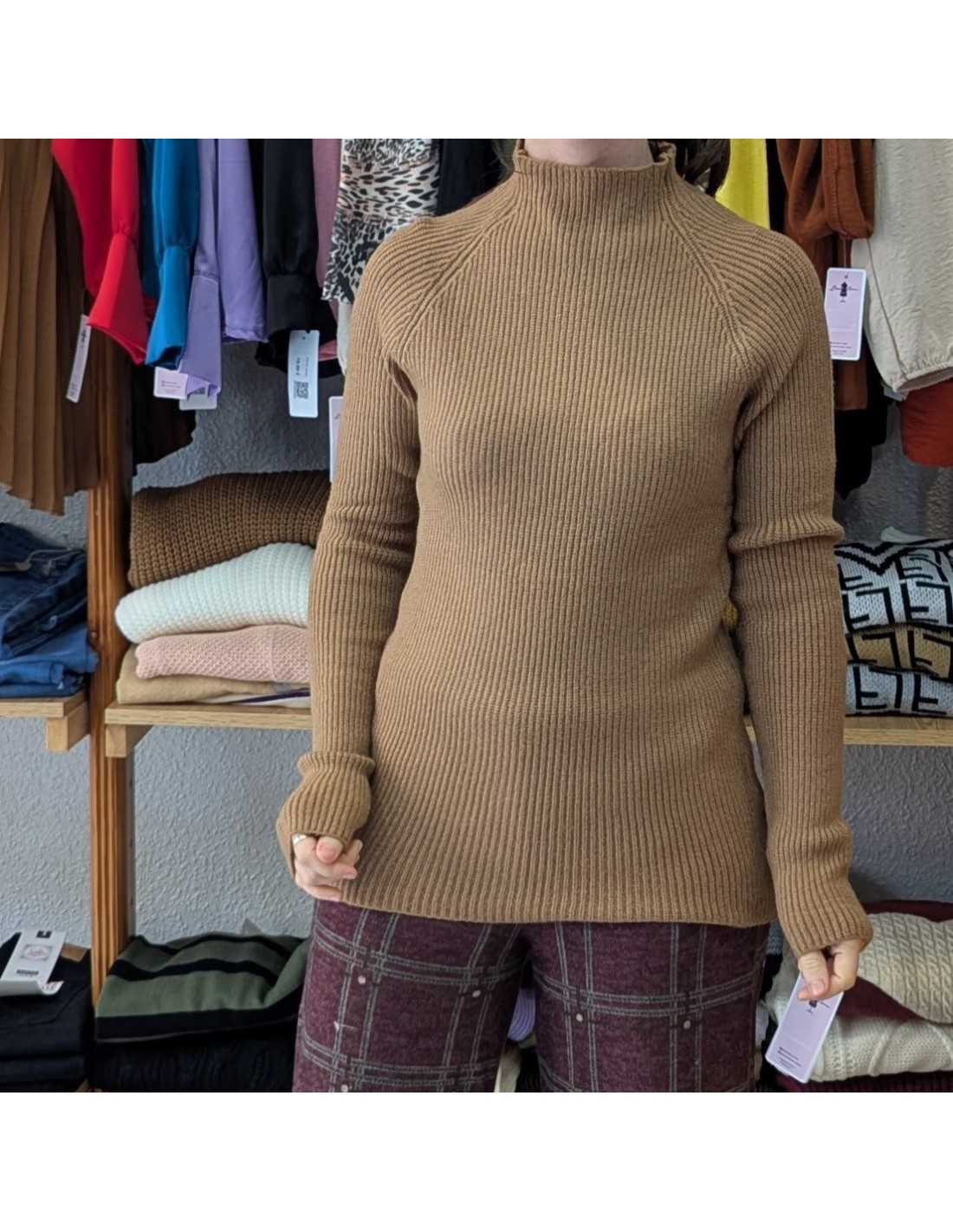 Jersey de punto acanalado, de cuello perkins y manga estilo ranglan. Tejido de punto grueso.