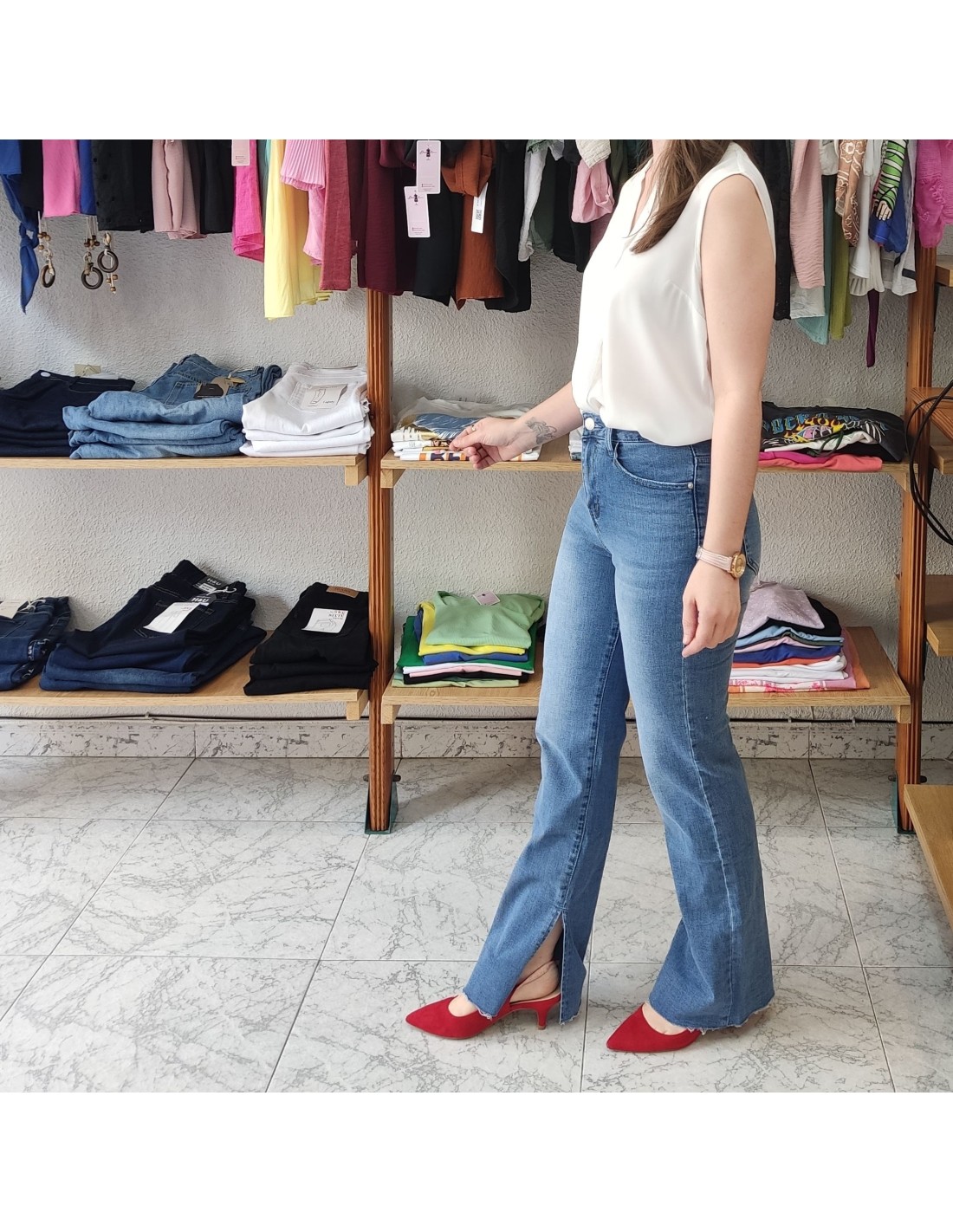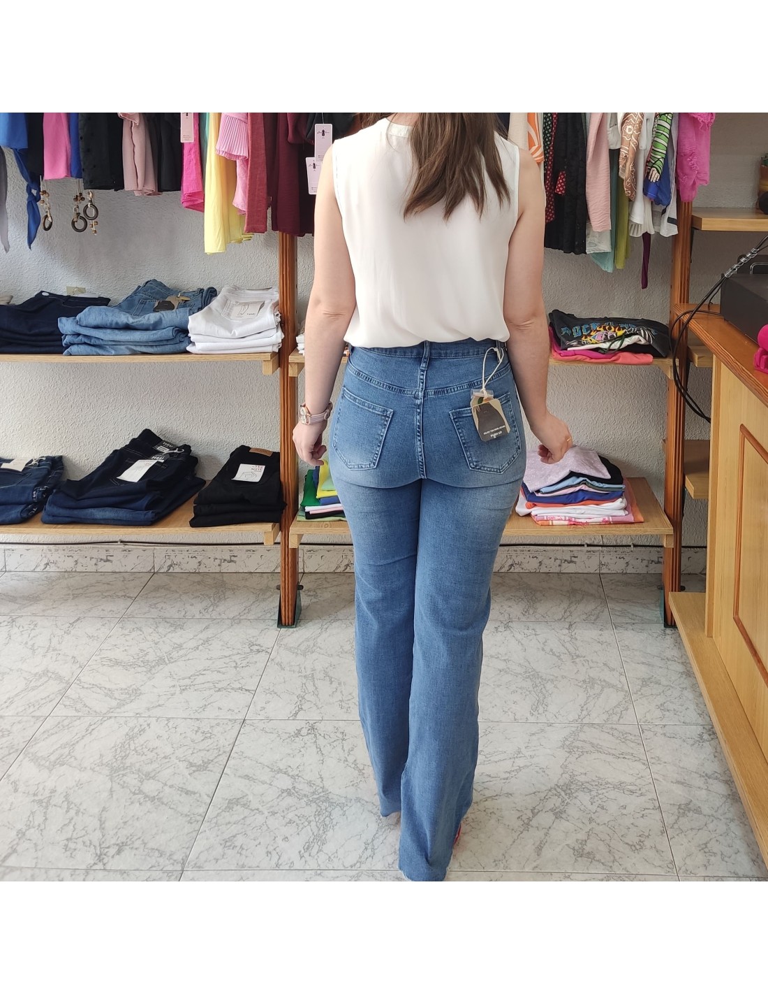 Últimas unidades en stock Pantalones Pantalón Anthea 15,00 € Pantalón de tejido de rayón, en color negro y con estampado de raya diplomática, talle alto con cintura elástica y ajustable con cordón, bolsillos completamente funcionales y pierna ancha. Añadir al carrito